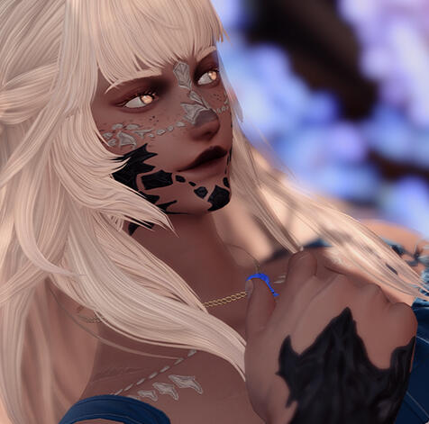 APPEARANCE liokki has an average height for a viera . his skin is marred with scars from years as a hunter of the steppe & later as a gleaner. scales cover his face & torso which he inherited from his mother.